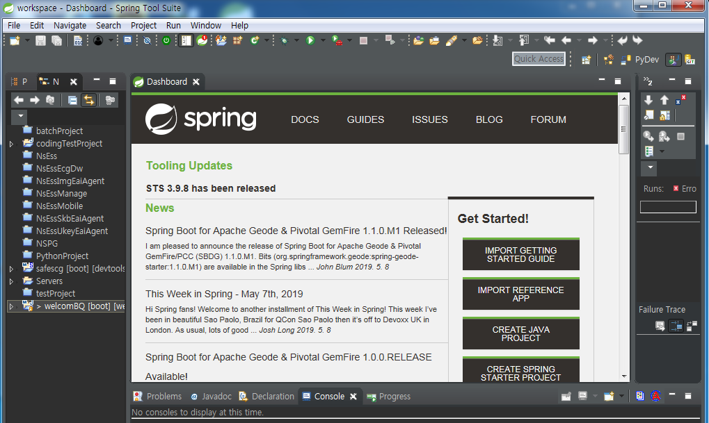 STS(Spring Tool Suite)은 SpringSource라는 스프링을 개발하고 관리하는 그룹에서 배포하는 IDE(통합개발환경)입니다.