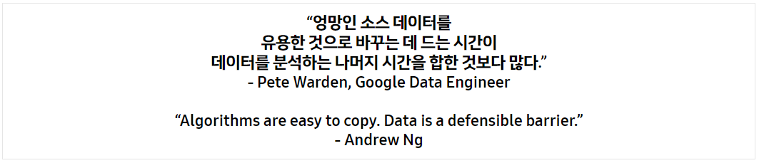 하지만 사용자가 Data Lake에서 빅데이터를 분석해 인사이트를 얻거나 의사결정 지원을 위한 리포팅/서비스 애플리케이션을 만들고자 할 경우, 데이터 전처리(수집/정제/변환) 과정에만 작업시간의 대부분(80%)이 소요됩니다.